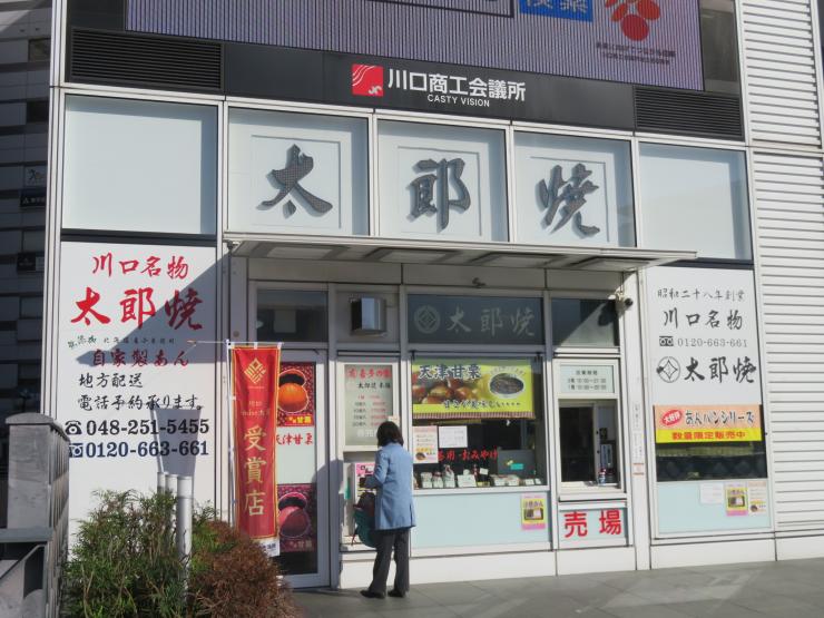「太郎焼本舗」は、1953年(昭和28年)創業のJR「川口駅」東口駅前にある「太郎焼」などを販売するお店です。「太郎焼」とは、いわゆる「今川焼」や「たいこ焼」のようなもので、先代の社長さんが親しみやすく覚えやすいように名前をつけました。薄い生地にあんこがたくさん入っているのが特徴です。「太郎焼」の他にも、「たい焼」、「あんパン」、「小倉あん」などを販売しています。