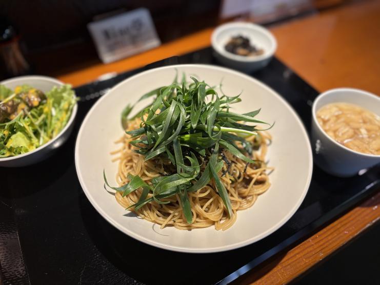 週替わりランチで提供した鶏むね肉と九条ネギの和風パスタ