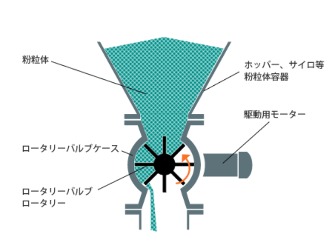 アイシン産業の主力製品であるロータリーバルブは、回転により粉粒体の流量を調節する弁装置です(https://www.aishin-sangyo.co.jp/products/10-016-doc.html)。例えば粉砕機で細かくした粒をふるいにかけるとき、所定の量を安定して供給することが重要で、その際ロータリーバルブが必要となります。ローターの羽根に一定量ずつ原料が入り、その羽根が回転することで原料を送り出し、定量供給をします。