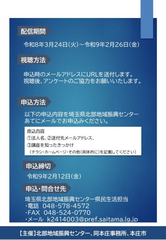 当センター県民生活担当あてメール(k2414003@pref.saitama.lg.jp)でお申込みください。