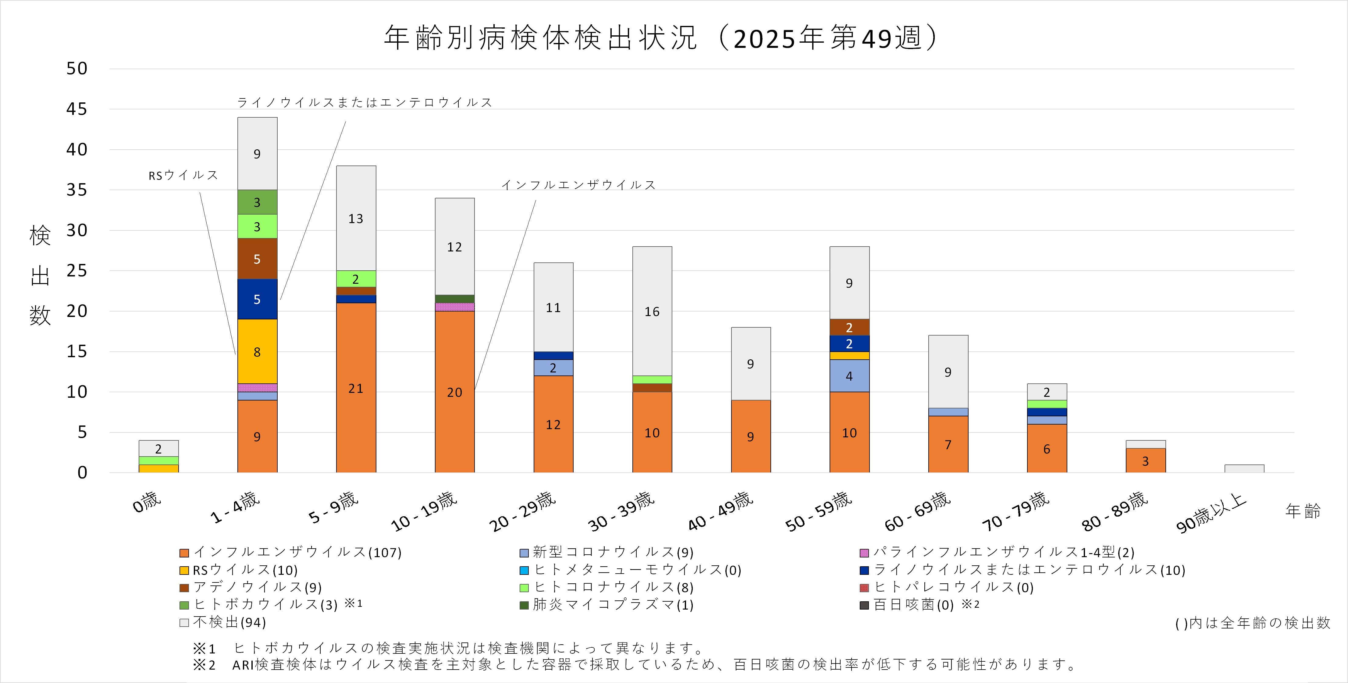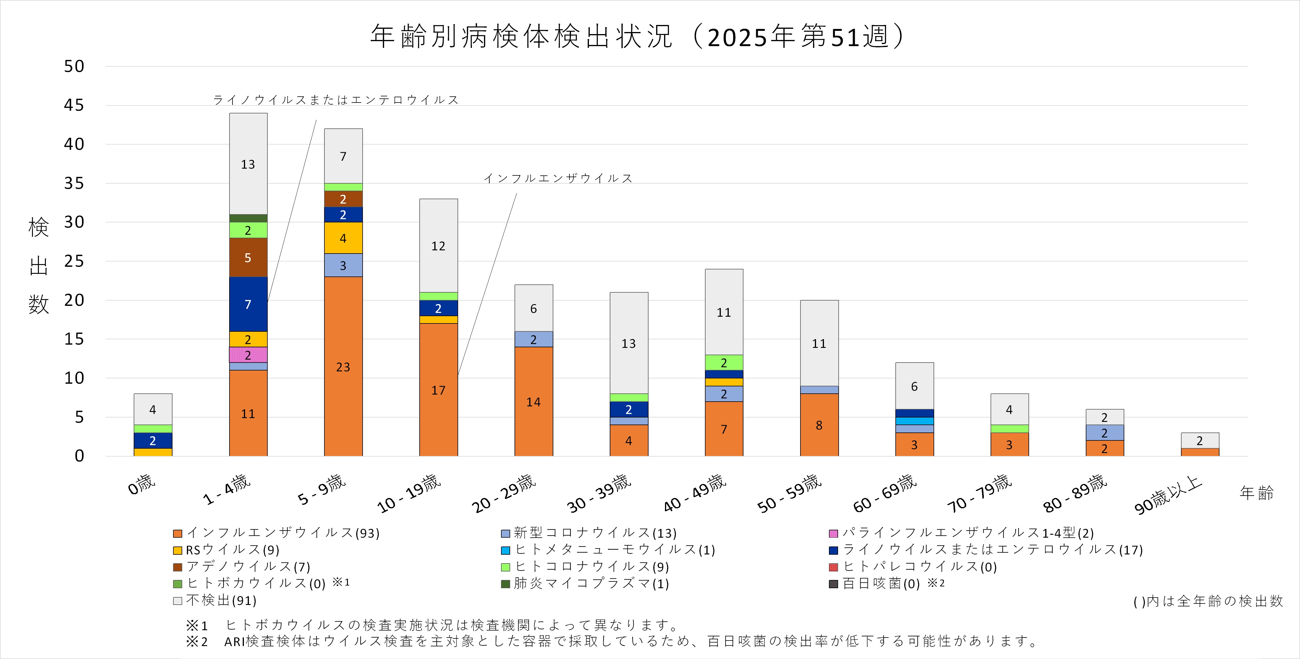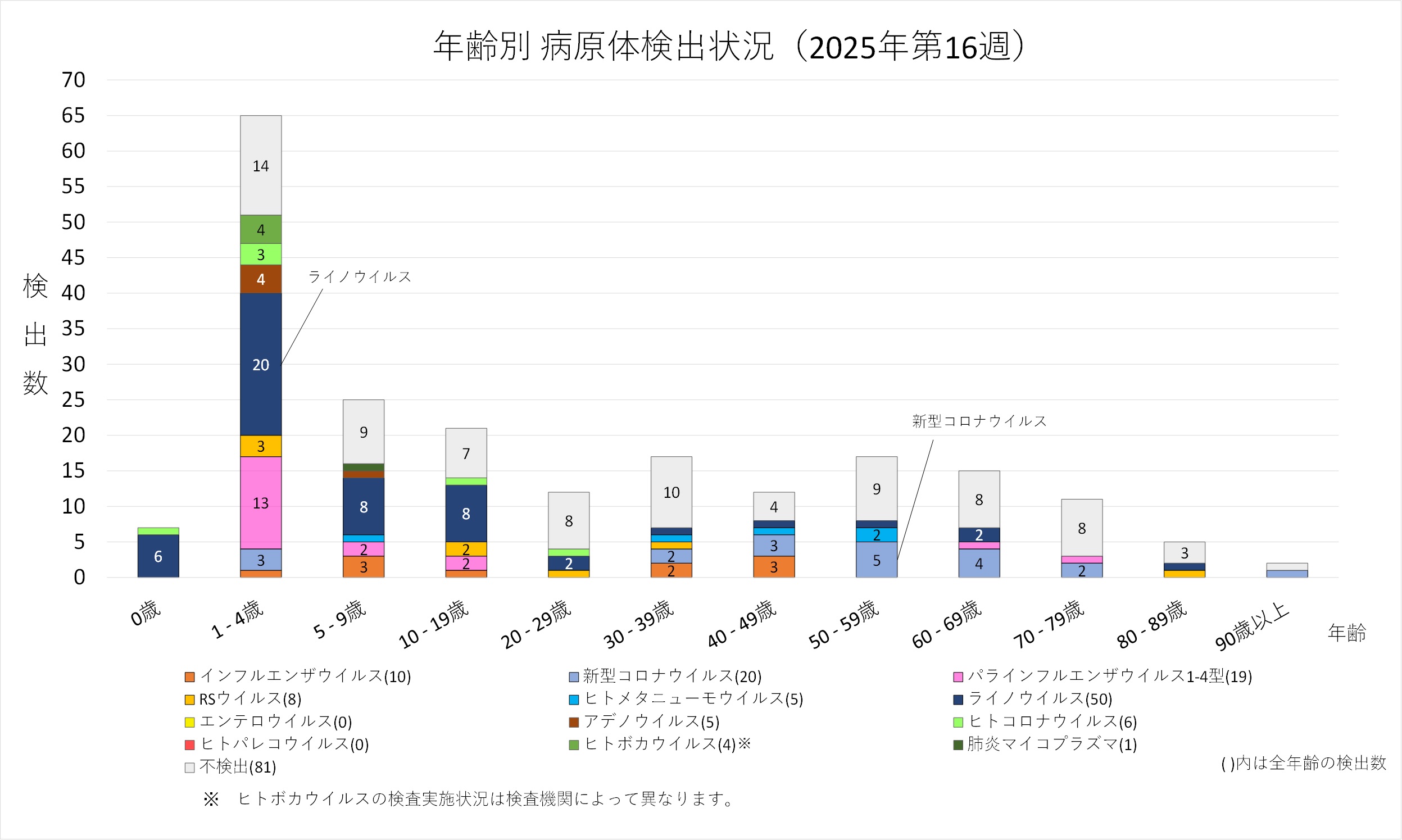 トップページ > 県政情報・統計 > 県概要 > 組織案内 > 保健医療部 > 保健医療部の地域機関 > 衛生研究所 > 感染症情報センター > かぜ様症状の原因ウイルスの流行状況(急性呼吸器感染症(ARI)病原体サーベイランス)