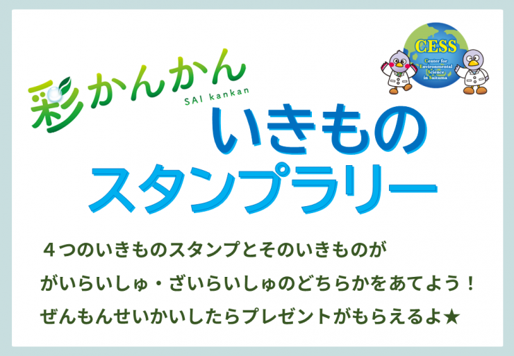 「彩かんかん いきものスタンプラリー」 4つのスタンプを集めた方に粗品をプレゼントいたします。