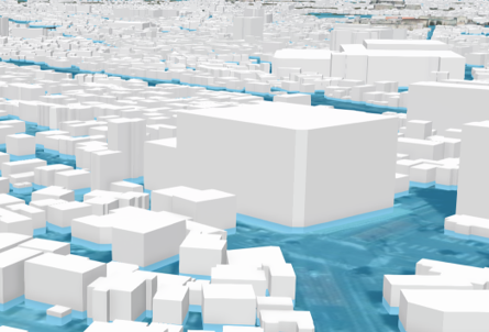 3D都市モデルを活用し、埼玉県における洪水と土砂災害のリスクを3次元で可視化し、閲覧できるようにしたものです。