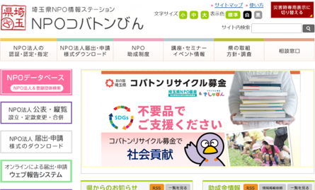 埼玉県が実施するNPO支援施策等を紹介するページです。NPO法人の認証、認定、指定に関する情報や、NPO助成制度、セミナーやイベント情報等を掲載しています。